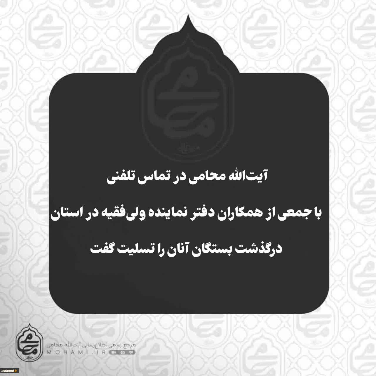 امتیاز دهید : آیتالله محامی در تماس تلفنی با جمعی از همکاران دفتر نماینده ولیفقیه در استان، درگذشت بستگان آنان را تسلیت گفت 2 شنبه 25 آبان 1404 ساعت 8:41