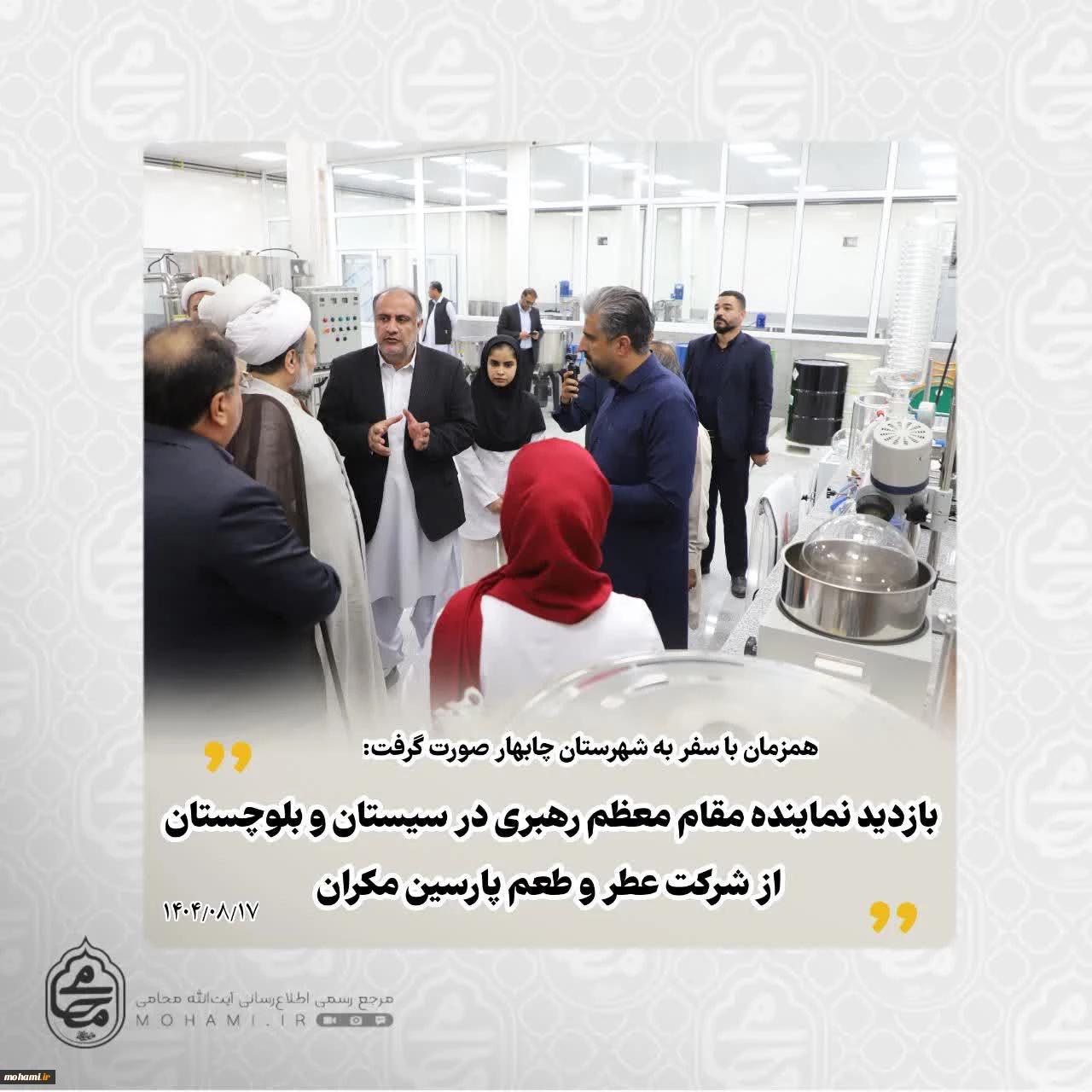 امتیاز دهید : همزمان با سفر به شهرستان چابهار بازدید نماینده مقام معظم رهبری در سیستان و بلوچستان از شرکت عطر و طعم پارسین مکران 2 شنبه 25 آبان 1404 ساعت 8:54