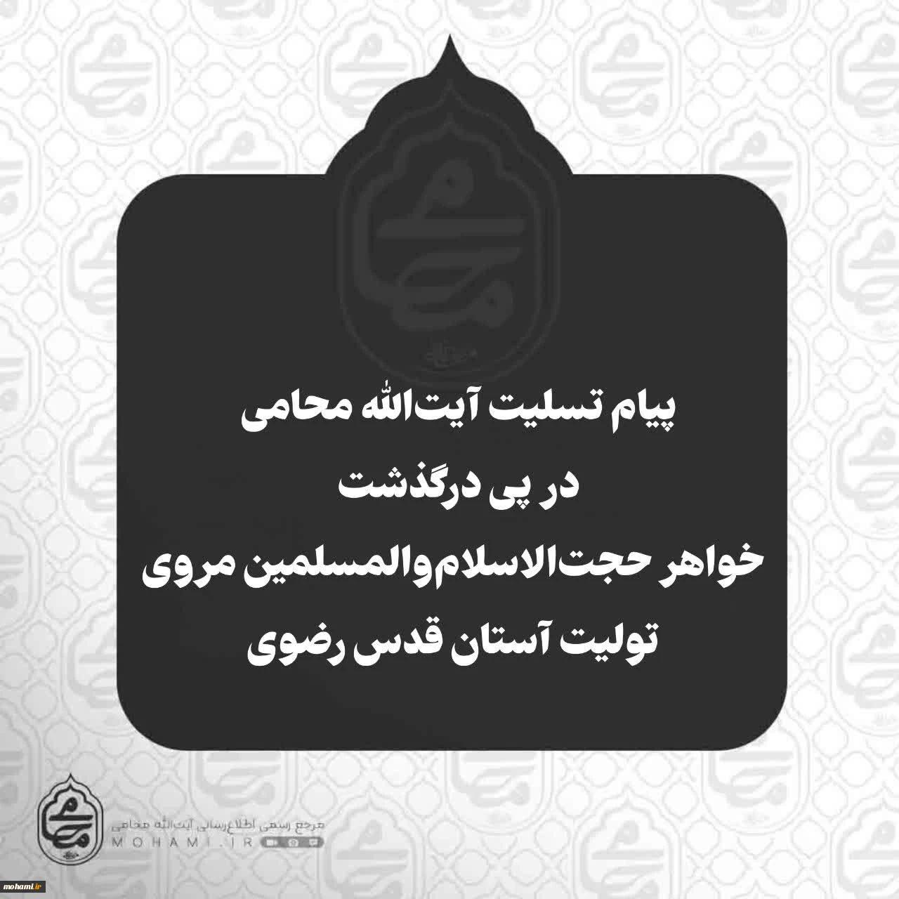امتیاز دهید : پیام تسلیت آیتالله محامی در پی درگذشت خواهر حجتالاسلاموالمسلمین مروی تولیت آستان قدس رضوی 2 شنبه 25 آبان 1404 ساعت 9:16